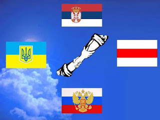 На крају крајева, сви политичари Евроазије и Европске Уније, и Америке су пиони у заједничком интересу који стоји иза кулиса. Док на фронту Рускиње и Украјинке губе синове, мужеве, момке, очеве, за то време се у окупираној Москви и окупираном Кијеву задовољно трљају крваве руке главних душмана завађених, братских народа. Москва – некада понос руског народа, средиште славне Московске кнежевине, која је руску државност заједно са словенством ширила далеко на исток, са њима ширећи и руску славу, забележену у вековима крваве историје велике руске нације. Кијев – средиште Кијевске Рус', отаџбина књаза Свјатослава Игоревича, који је словенску земљу крвљу и мачем одбранио од инвазије Хазара... Ова два велика града су данас бачена на колена! Москва, у сенци „великог владара“ и квази-руског патриоте, Владимира Путина, бившег КГБ-овца и главног промотера исламизације и туђинске колонизације Русије, а Кијев, под чизмом америчког и НАТО кловна Петра Порошенка, увозника декадентног западног утицаја у Украјину, човека због кога многи Украјинци немају ни за парче хлеба, те, када се на крају направи паралела, између њега и изгладњиавча Украјине из тридесетих година прошлог века – нема никакве разлике.